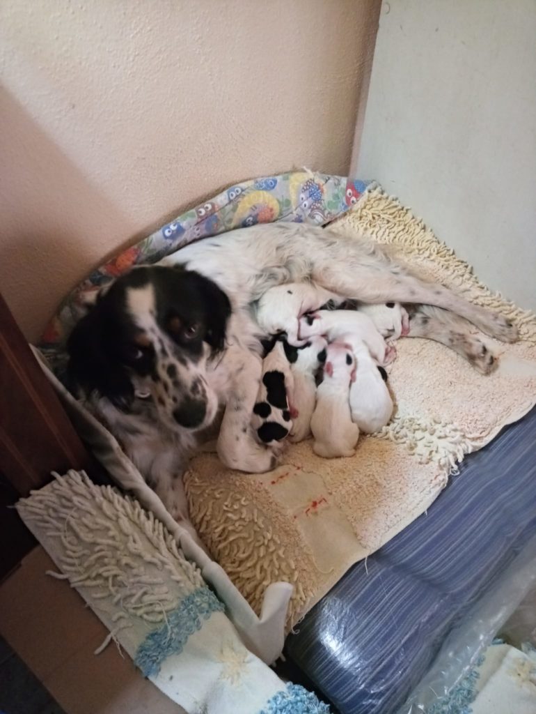 “Grazie della presentazione Jemma, ma adesso torniamo a casa..!”” Qualche giorno dopo rientra a casa e la chiudo evitando ancora che potesse uscire. Dopo sessanta giorni arrivano i cuccioli, 8 cuccioli. bellissimi. Ma del “Timido e molto sprovveduto papà setter” neppure la traccia, sparito! Costruiamo un riparo in una casetta a noi vicina e trasferiamo Cuccioli e mamma, dopo qualche settimana. Adesso hanno quasi sessanta giorni sono bellissimi e affettuosissimi, cè Poldo il furbastro, Timidina, Barilotta, Bandita, ecc. Ne mancano Due, Qualcuno se li è presi, Speriamo che li trattino bene!.
